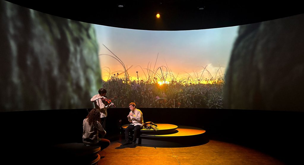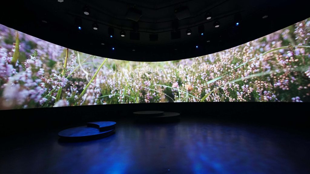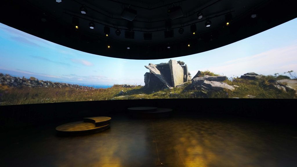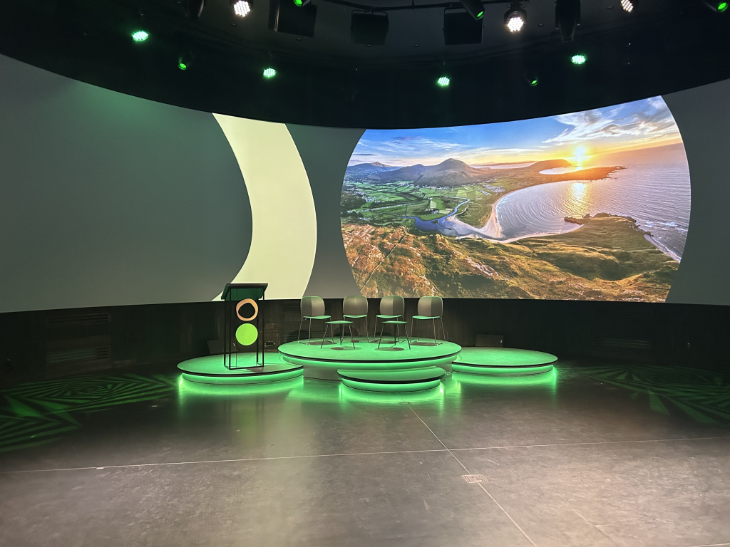 The Pavilion consisted of three showcase spaces. The first ellipse explored Irish nature. Second ellipse showcased cultural artefacts such as musical instruments and sculpture. The third functioned as an event space which housed the commissioned projection film alongside panel discussions, daily live music, and seasonal programming. High Res designed and delivered the projection system and lighting integration to support flexible playback across the full Expo run.